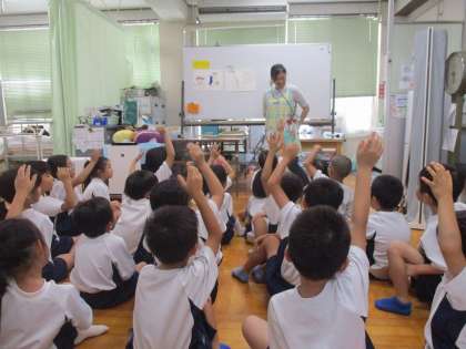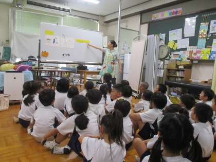 計測の前に、養護教諭の中田先生からけがをしたときどうしたらよいか、についてお話がありました。擦り傷のときは、しっかり水で30秒洗い、泥や砂を落とす、浅い傷の時は自分で治す力があるから洗った後そのままにしておく、など自分でできることを教えてもらいました。学校にもだいぶ慣れてきたので、身体の事もどうしたらよいか自分で考えられるようになるといいですね。