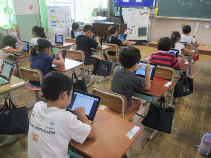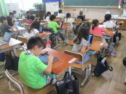 今日は、初めてGIGA端末を使って、ロイロノートに挑戦しました。テーマは、「自己紹介をしよう」です。自分の顔をカメラで撮影したり、好きなものを絵や字でかきました。画面タッチにも慣れるのが早く、集中して作業していたら、あっという間に一時間が過ぎてしまいました。パソコンでできることを少しずつ増やしていきたいと思います。