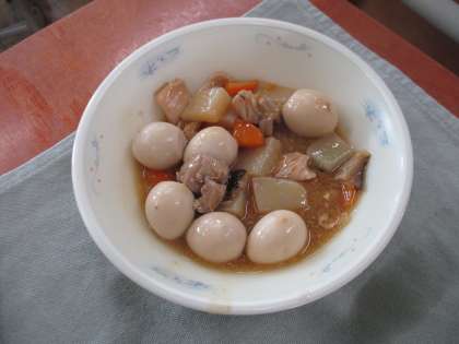 鶏肉やこんにゃく、うずら卵、しいたけなどプリプリした