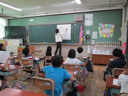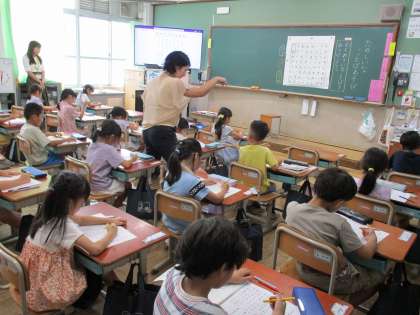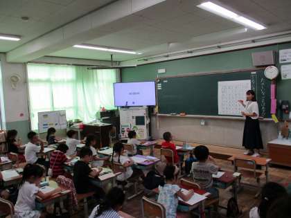 1年生は、国語の学習でした。マスの中にちりばめられた64文字のひらがな表をたて・よこ・ななめに見て、かくれている言葉を探します。みんなはいくつ見つけることができたかな?