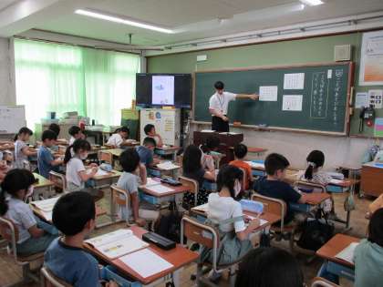2年生は、国語の学習でした。あいうえお作文を作って楽しんでいました。「あいうえお」「かきくけこ」や「あかさたな」などを頭文字にして文章を考えます。さすが2年生ですね!大人もうならせる楽しい作文ができあがりました。