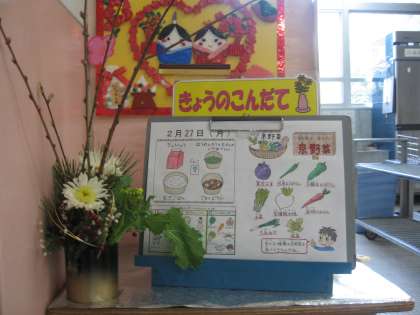 今日の献立から、23年度最後の給食カレンダーになりました。まだまだ、寒い日が続きますが、少しずつ春の訪れを感じるようになりましたね。