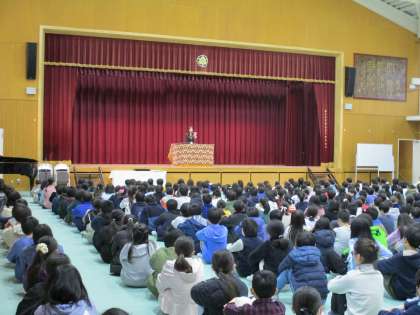 修了式に続き、いつも子どもたちの登下校の安全を見守ってくださっている見守り隊の皆様へ感謝の気持ちを伝える会を行いました。おかげさまでこの一年、子どもたちは安心して登下校することができました。ありがとうございました。引き続きどうぞよろしくお願いします。