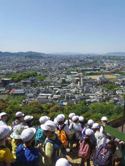今日は、社会見学に行きました。「法」の山に登って京都市の様子を見ることができました。急な山道や長い距離を歩きましたが、3年生になり体力がついたのか、疲れも見せず元気に帰ってくることができました。天候にも恵まれ、楽しく社会見学に行くことができました。