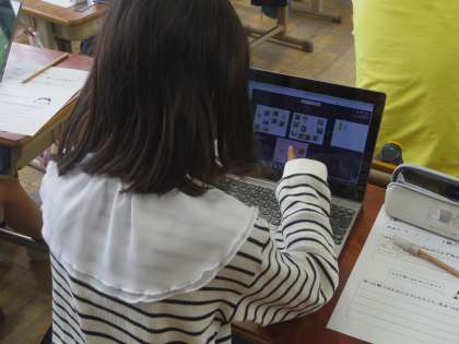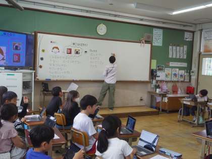 栄養教諭の河合先生に「体によい朝ごはん」について教えていただきました。タブレットを使って朝ごはんのメニューを考えました。ただ好きなものを選ぶのではなく、「赤」「黄」「緑」の栄養やSDGsの観点から食べられる量も考えて朝ごはんのメニューを決めることができました。
