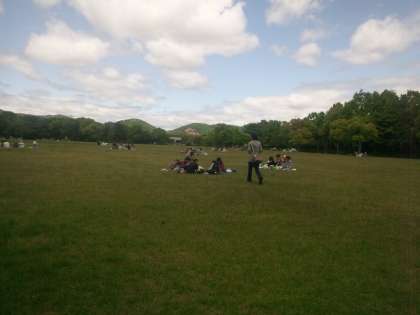 青空広場で,おにぎり弁当を