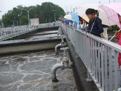 午後はあいにくの雨となりましたが、下水処理の各行程を見学しました。