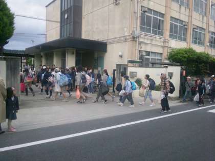 ほぼ予定通りに学校に到着し,学校で解散式を行いました。
