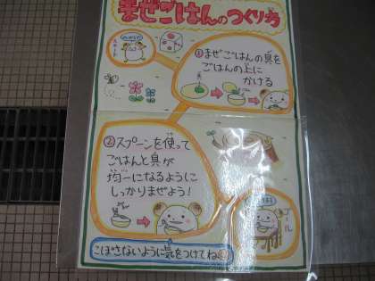 「たけのこごはん」の竹の子は、4月〜5月ごろに土の中から顔を出してくる春においしい食べ物です。食の季節感が失われがちな中、給食では旬の食材を使った献立で子どもたちが季節感を感じられるように工夫しています。たけのこごはん具は、竹の子に味がしっかりしみ込むようにじっくり煮含めました。子どもたちには、しっかりスプーンでごはんに混ぜて、おはしで食べるように話しました。竹の子の歯ごたえを楽しんで食べることができたでしょうか?