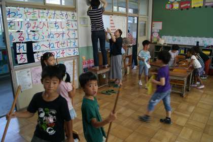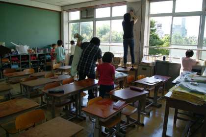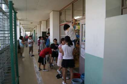 今日から,前期の後半が始まりました。夏休みまでのよごれをきれいにするため,今日の2時間目は大掃除になっていました。今日の,大掃除は保護者の方々にもお手伝いをしていただく「親子でぴかぴかお掃除DAY」です。普段はなかなか掃除できない,教室の扇風機の掃除や,夏休み中にクリーニングしていただいたカーテンの取り付けなど,子どもたちとともにお掃除をしていただきました。