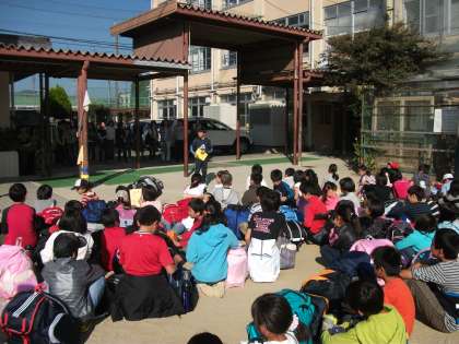 いよいよ待ちに待った「花背山の家」長期宿泊の出発。学校での出発式のあと,バスで,山の家に向かいました。70名全員の参加,元気に過ごしてきます。