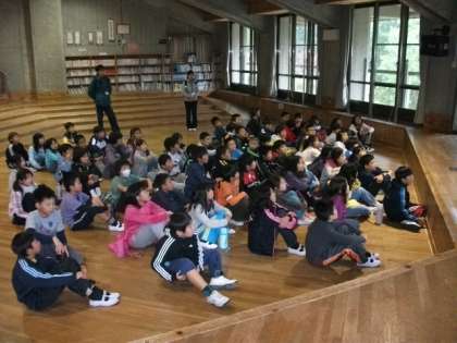 広い館内を,問題を解きながら進んでいきます。階段や宿泊棟では,他校の子どもたちと出会います。気持ちよい挨拶もしっかりできています。