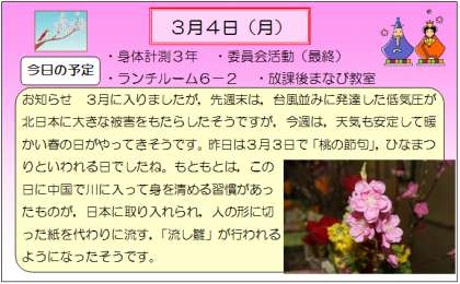 3月4日のお知らせ