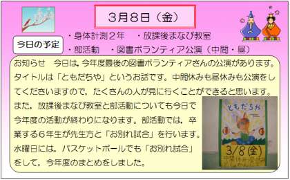3月8日のお知らせ