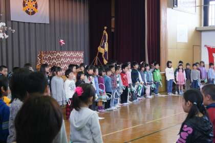 4月8日より平成25年度の学校生活がスタートしました。新しい教職員の着任式,始業式の後,1年生の入学式が行われました。学校長のごあいさつの中で,1年生との3つの約束がありました。「友だちにやさしくする」「早寝早起きをして気持ちよく1日を過ごす」「安全に気をつける」という内容です。1年生は,よい姿勢でしっかりとお話を聞くことができました。また,2年生は入学をお祝いして,葵小学校での学習について,歌や楽器演奏を交えた発表をしてくれました。