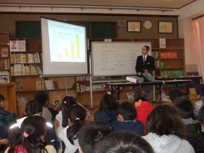 京都環境コミュニティプロジェクトの方々に来ていただき,環境についての学習を行いました。いろいろな職業(会社など)においても,エネルギーの無駄遣いや二酸化炭素の排出を抑える努力や工夫をされていることを知りました。そして,自分たちの生活の中で,すぐに取り組めることを考えました。