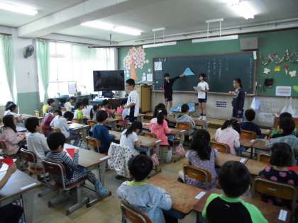 6年生は、今月の27日、平和学習で広島の平和公園を訪れます。平和を願った千羽鶴を捧げるため、全校の人たちに協力してもらいました。