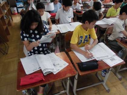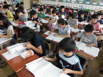 採点後に,さっそく漢字の練習をしたり,算数の問題の解説を熟読したりする姿も見られました。
