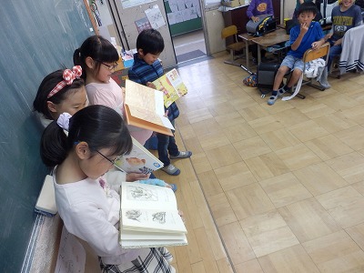 週に1回程度,係が選んだ本を朝の会で読み聞かせをしてくれます。