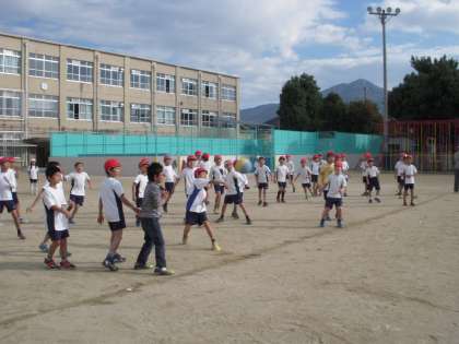 今日は体育で運動場でドッチボールをしました。男女対抗戦やクラス対抗戦をしました。男女対抗戦では,男子の陣地を狭くするというハンデをつけて試合を行うなど,様々なルールを設定して行いました。また機会があれば学年でこのような時間をとっていければと思います。