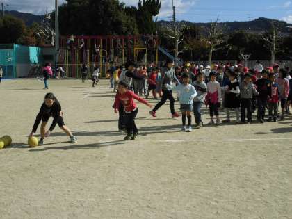 1組も2組もゴールめがけて一生懸命に蹴っていました。