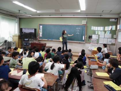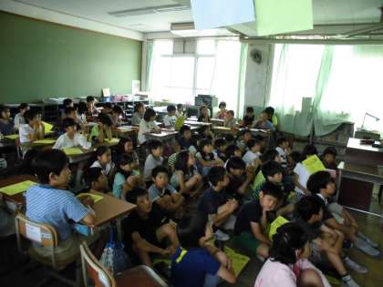 写真を見ながら、みさきの家の施設を確認する4年生のみんなの目は