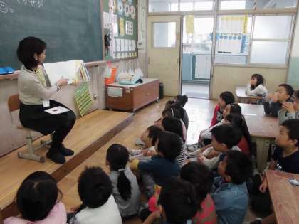 素敵な読み聞かせで,子どもたちは絵本の世界を想像しながら,夢中になって聴いていました。