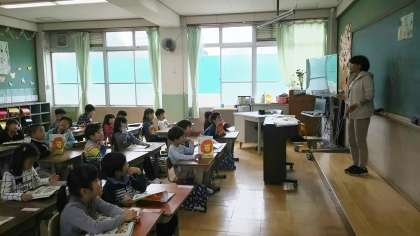 1年生の教室での様子です。まずは学習時の姿勢やルールなど,しっかりと身に付けていくようにします。