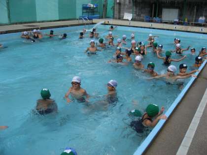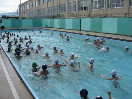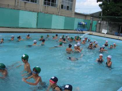 7月23日のプールは低学年でした。連日の猛暑,今日も90名あまりの子どもたちがプールで歓声をあげていました。熱中症など,十分にご注意ください。