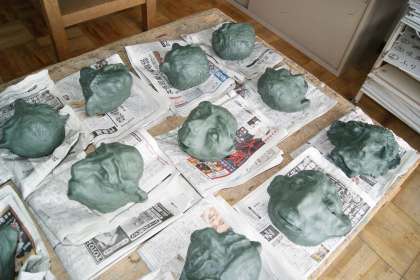 図画工作では,ブロンズ粘土を使って『自分の顔』を作りました。