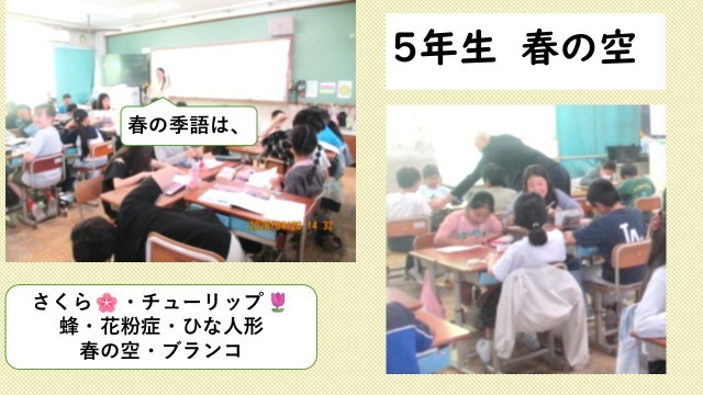 5年生は、対話をしながら、春の俳句づくりに取り組みました。6年生は、物語の魅力について友だちと対話をしながら確かめていきました。