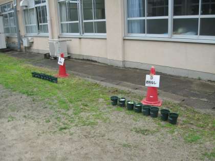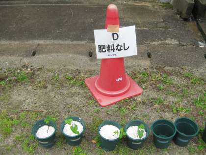 植物の成長の条件に,日光が関係するのか・肥料が関係するのかを調べています。
