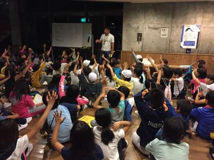 一日の終わりが近づいてきました。24名のリーダーが集まって,ミーティングをしました。各グループからは,みんなの頑張りが浮かび上がってきました。また,リーダーとして,苦労したことも聞かれました。山の家の活動は始まったばかりです。明日に向け,グループみんなで頑張ってほしいと思います。