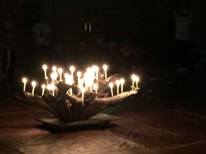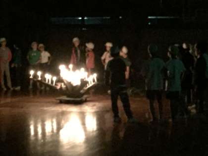 山の家の活動も,いよいよ佳境を迎えました。降雨のため,体育館でのキャンドルファイヤーでしたが,レク係の進行で,みんなで楽しく過ごすことができました。今日まで練習してきた各クラスからの出し物の時間が熱を帯び,思いの外ロングランのキャンドルファイヤーとなりました。