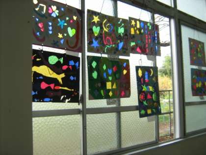 光を利用して、自分だけの色を表現しました。各教室の窓に飾ってあります。どうぞご覧ください。