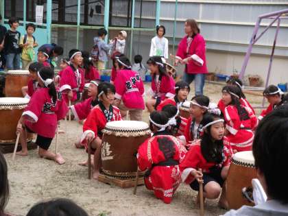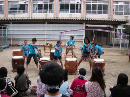 児童館となかよしクラブの太鼓で今年も遊びの学校が始まりました。