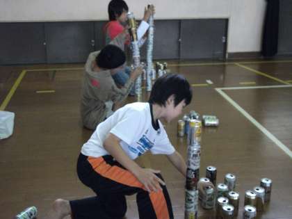 缶を高く積み上げて行きます。時間が来たときに,何段つみあがっているでしょうか。(担当:5年学年委員会)