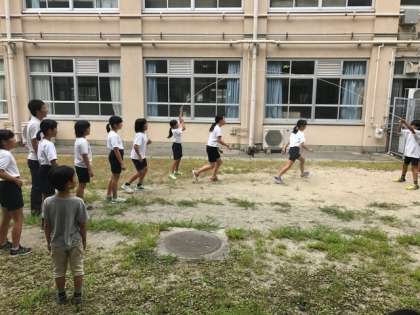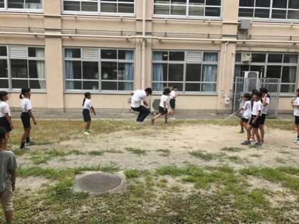 昼休みの遊びには季節ごとに旬があるようです。今の旬は・・・,そう大縄跳び!先生も一緒になって楽しんでいます。