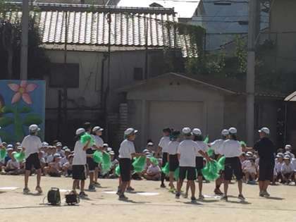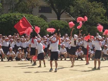 応援合戦練習は,やっぱり盛り上がります。応援団長を筆頭に,応援団が我が色の前に陣取り,応援リーダーを務めます約150人が結束し,それぞれに特徴のある応援を繰り広げます。