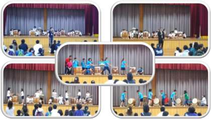 PTA会長,学校長のあいさつのあと,児童館・学童クラブのたいこクラブ&遊っ鼓の皆さんによる和太鼓の演奏がありました。