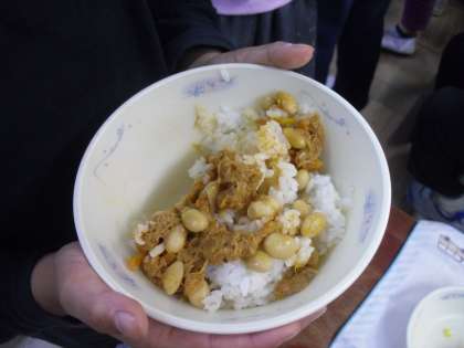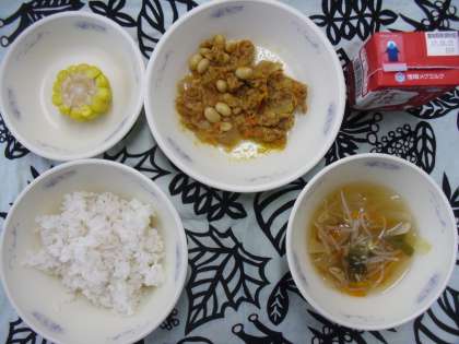 大豆とツナのドライカレーをごはんにのせて食べました。
