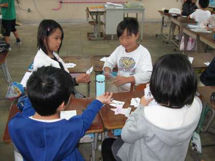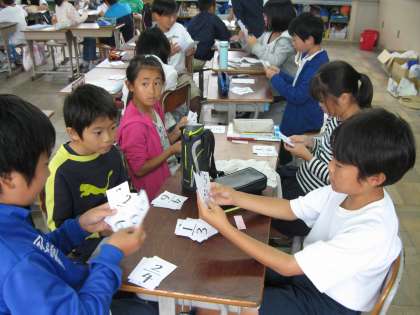 遊びで盛り上がる中で,分数の大きさを比較する学習となりました。