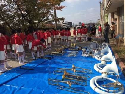 秋晴れの下,修学院少年補導委員会主催の「愛のパレード」が行われ,多くの皆様が参加されました。この催しでは,毎年,修学院中学校吹奏楽部が先導し,修学院学区をパレードします。今年も学区の多くの方々から声援をいただきました。途中,修小に立ち寄り小休止,そして,白川北山の交差点で演奏し,柊公園に戻りました。