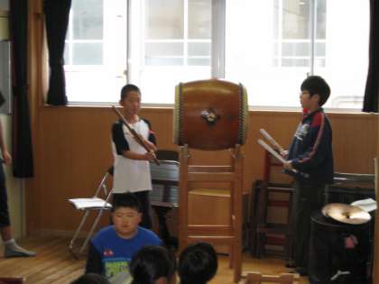 「ささら」や「竹」や「和太鼓」を楽器として使いながら,歌とリコーダーのパートに分かれて練習しました。