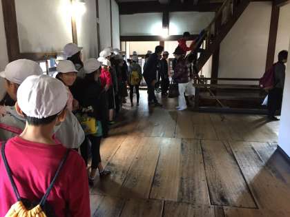 いよいよ城内に入ります。細くてとても急な階段を使って、最上階まで辿り着きました。さあ、次は、リトルワールドに向かいます。