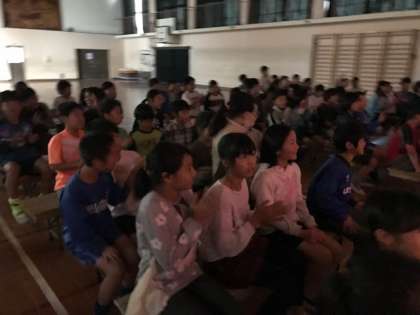 応援席では,ステージにいる仲間を励ます声がたくさんでていました。自分の番がくるのを緊張しながら待っています。