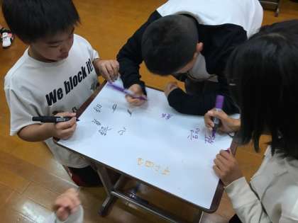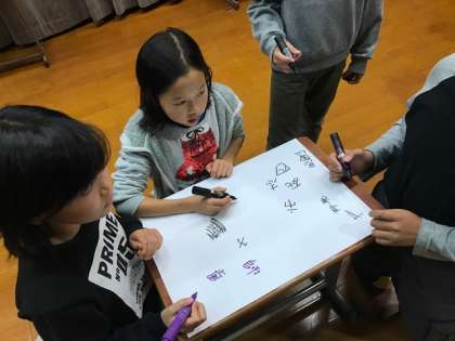 5回戦,6回戦のお題は,「五画」の漢字,「シ」と読む漢字です。予想して学習していたお題がでたグループもあり,他の友達の鉛筆が止まっていても,スラスラと書くことが出来ている人もいました。残すは最後のお題です。