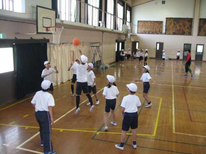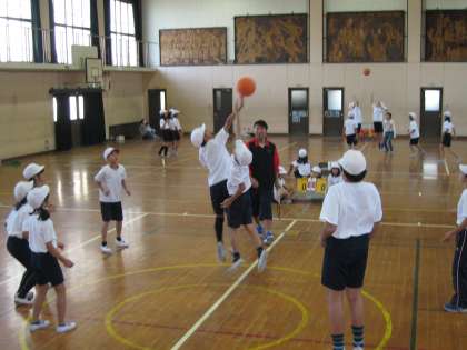 修学院校では,バスケットボールを習っている児童が多く,その子たちがチームの中心となってすすめてくれています。