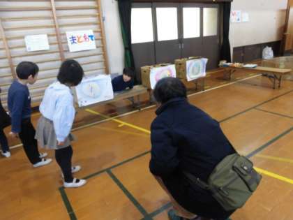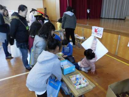 どんぐりやまつぼっくり,落ち葉を使ったおもちゃやゲームのコーナーを作り,保護者の皆様とともに楽しみました。コーナー担当(店番)になれば,ゲームのルール説明や呼込みで大忙し。遊びに行くときには,どこへ行こうか迷いながらも,たくさんのコーナーを回っていました。