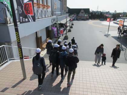 メインゲートでクラスごとに集まったあと,各体験教室ごとに